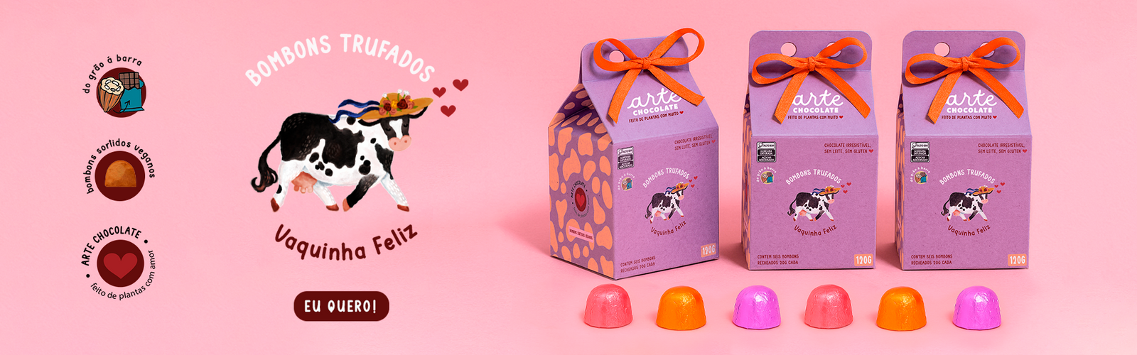 Coleção Trio dos Sonhos - Bombons Caramelix, Lascas de Chocolate Nuvem de Morango e Creme de Baru com Cacau